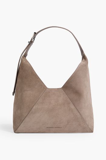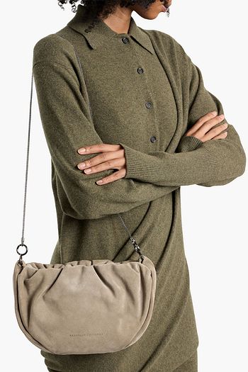 Leather-trimmed suede shoulder bag