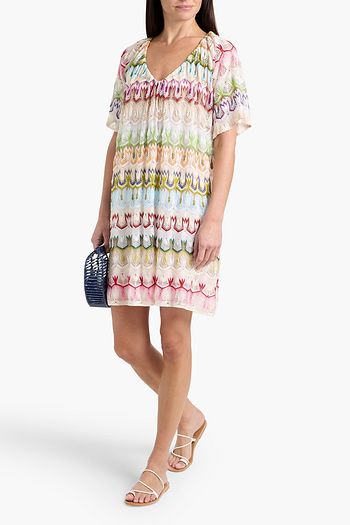 Metallic crochet-knit cotton-blend shirt dress