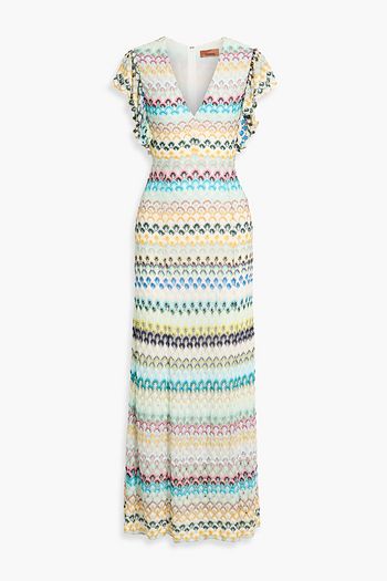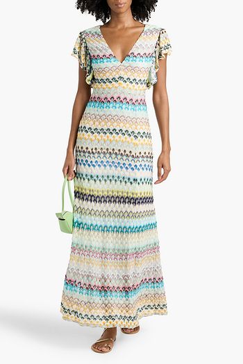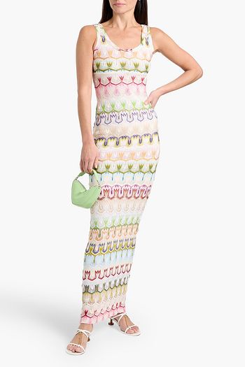 Sequin-embellished cable-knit cotton-blend maxi dress