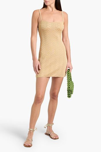 Ruffled appliquéd cotton-blend lace and crepe de chine mini dress