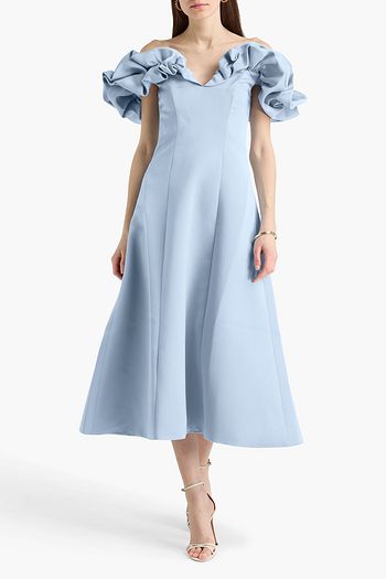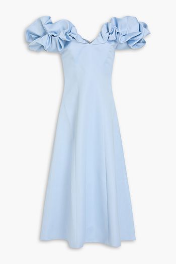 Off-the-shoulder shirred cotton-poplin maxi dress