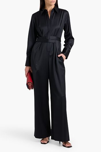 All Night Long belted wool-satin jumpsuit