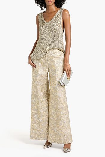 Metallic ribbed-knit tank