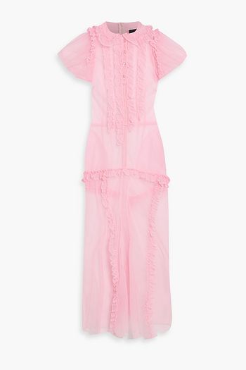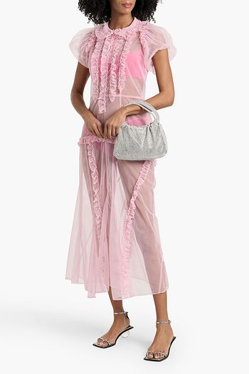 One-shoulder bouclé-knit and plissé-chiffon maxi dress