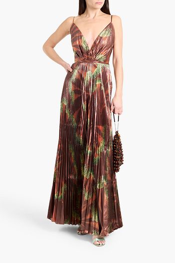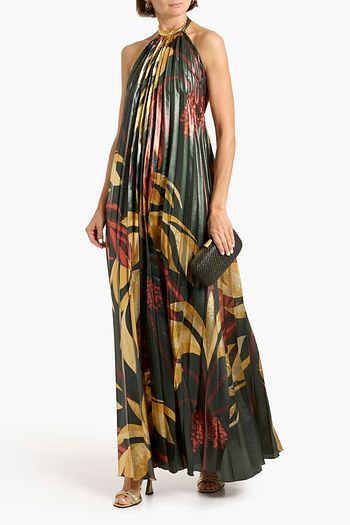 Western Gardens pleated printed lamé maxi dress
