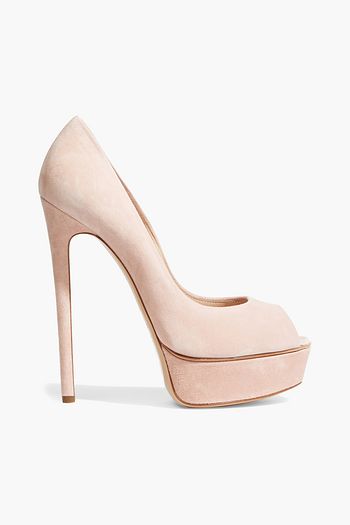 Laser-cut suede platform pumps