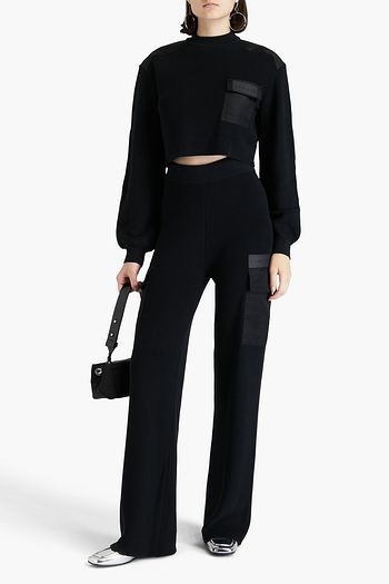 Marie belted satin-trimmed cotton-blend velvet straight-leg pants