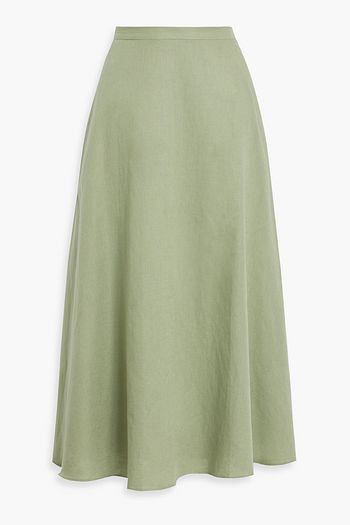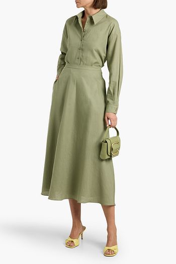 Floral-appliquéd linen and silk-blend organza maxi skirt