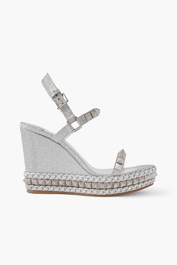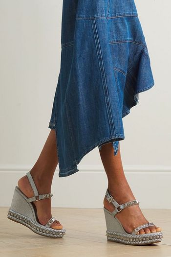 Bing 120 crystal-embellished mirrored-leather wedge sandals