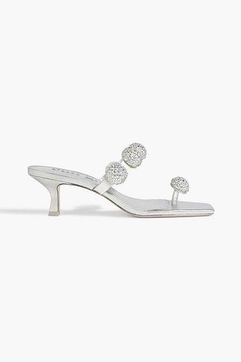 Bing 120 crystal-embellished mirrored-leather wedge sandals