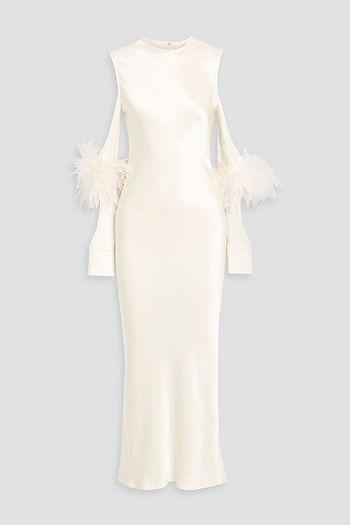 Off-the-shoulder stretch-knit and cotton-poplin maxi dress