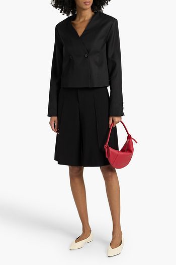 Crystal-embellished cropped wool-blend twill blazer