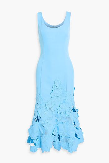 Floral-appliquéd cloqué midi dress