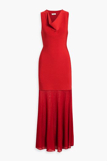 Papillion embellished textured-knit and poplin midi dress