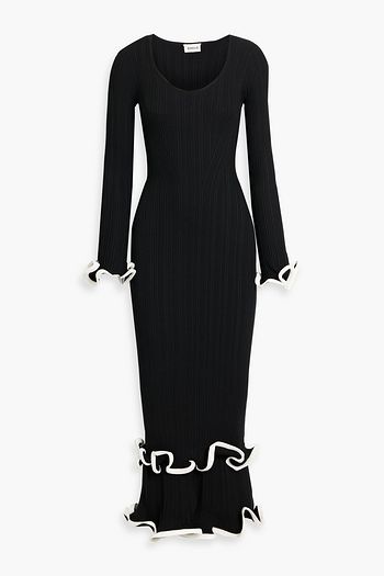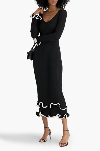 Sonali tiered ruffled ribbed-knit midi dress