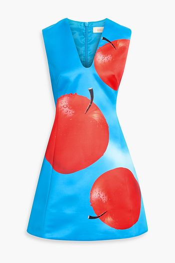 Crystal-embellished printed linen and silk-blend mini dress