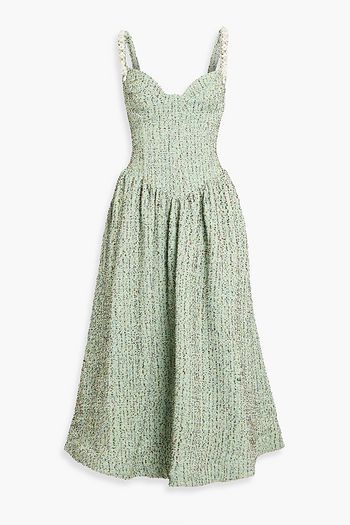 Embellished metallic tweed midi dress