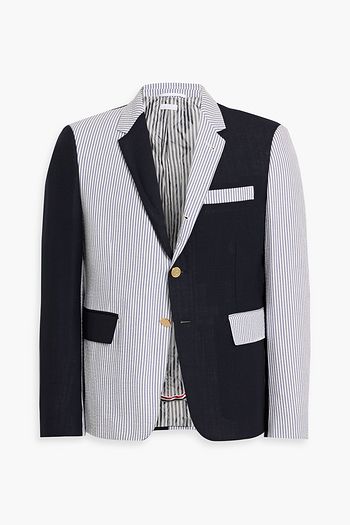 Striped seersucker-paneled cotton-twill blazer