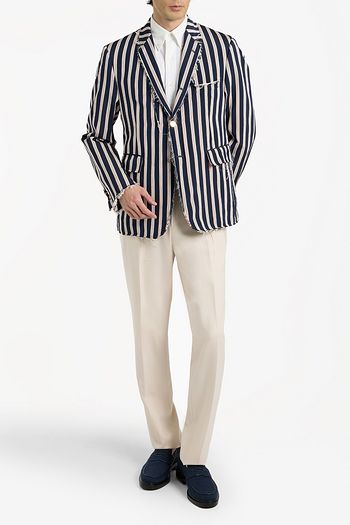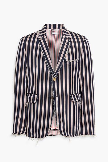 Distressed striped silk and cotton-blend faille blazer