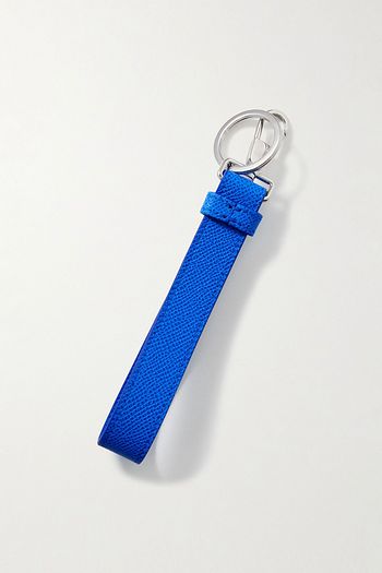 Leather-trimmed intarsia wool and cashmere-blend keychain