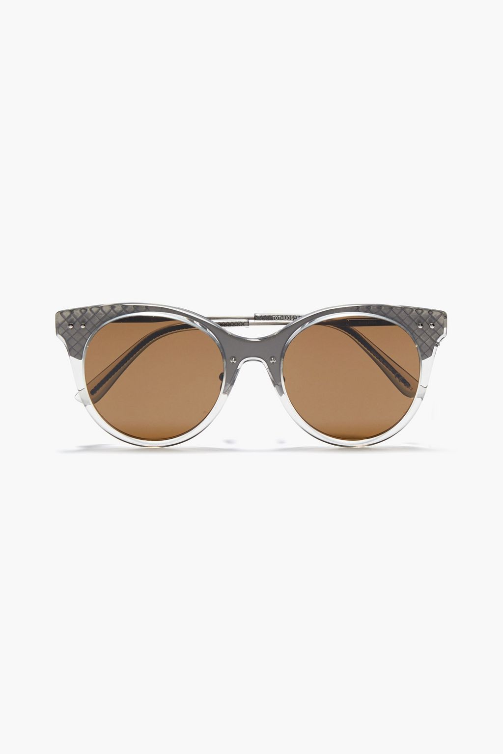 BOTTEGA VENETA Round-frame bronze-tone and acetate sunglasses