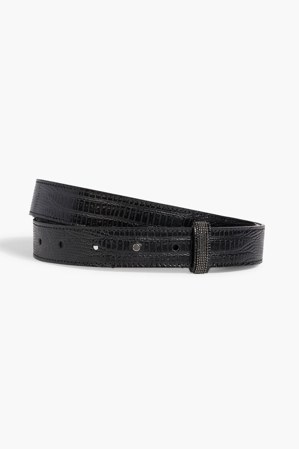 BRUNELLO CUCINELLI Bead-embellished lizard-effect leather belt