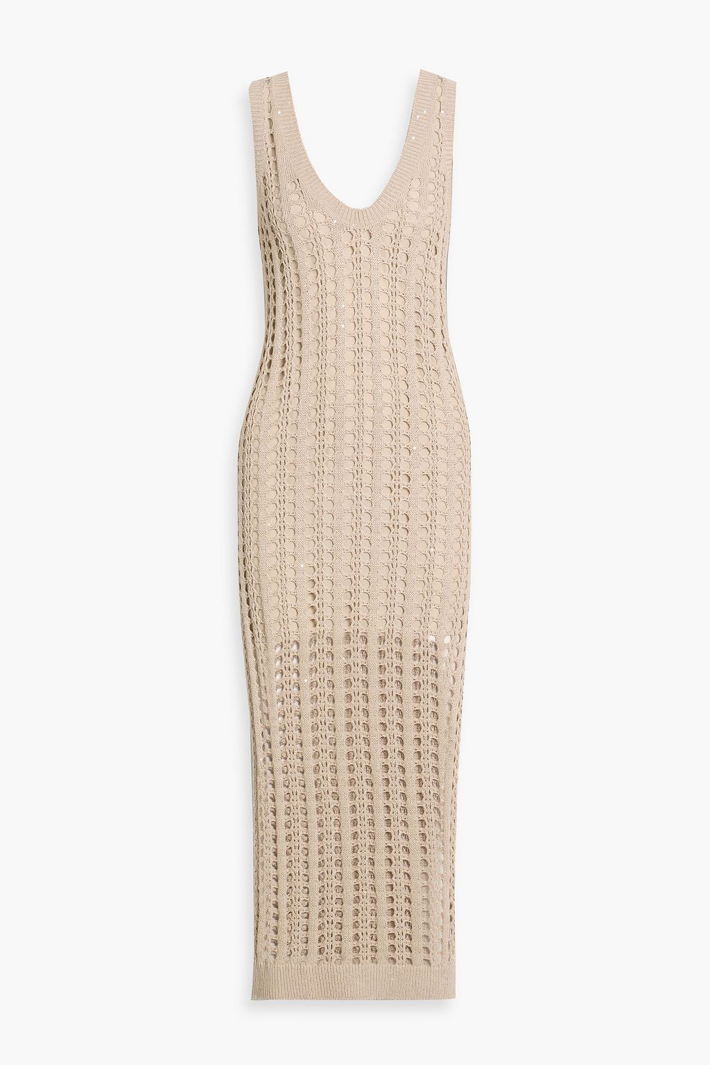 BRUNELLO CUCINELLI Sequin-embellished open-knit cotton, linen and silk-blend maxi dress