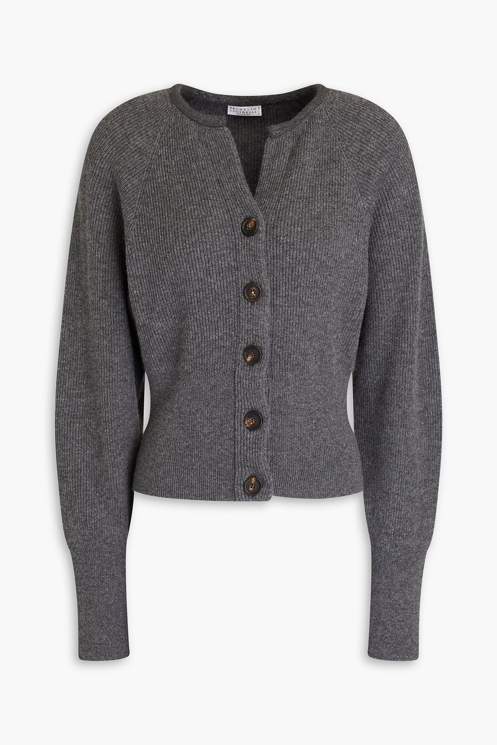 BRUNELLO CUCINELLI Bead-embellished ribbed cashmere cardigan