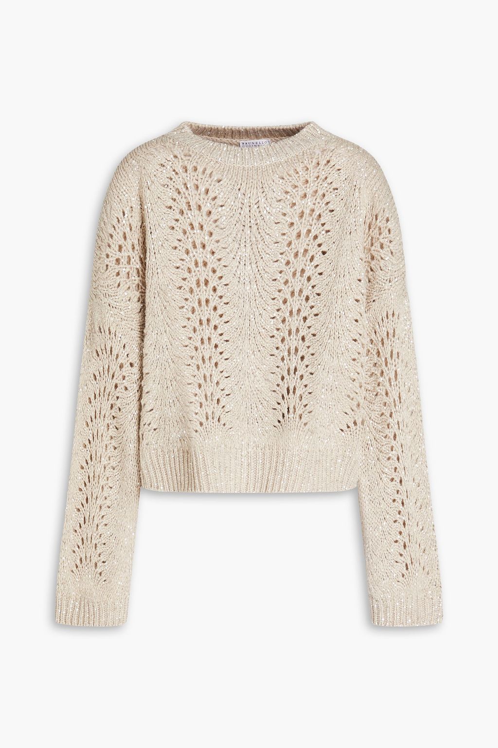 BRUNELLO CUCINELLI Cropped embellished pointelle-knit cashmere-blend sweater