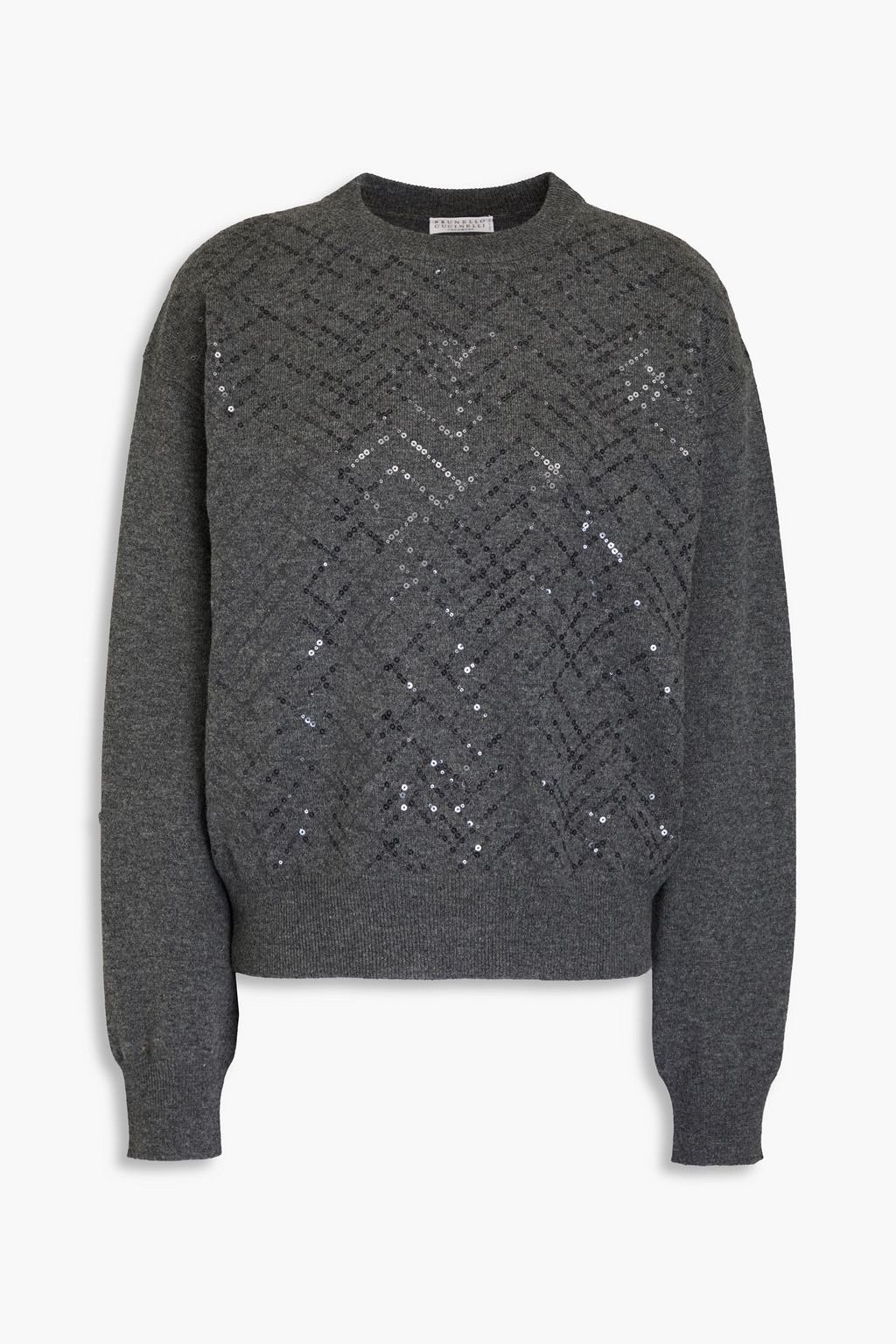 BRUNELLO CUCINELLI Sequin-embellished wool, cashmere and silk-blend sweater