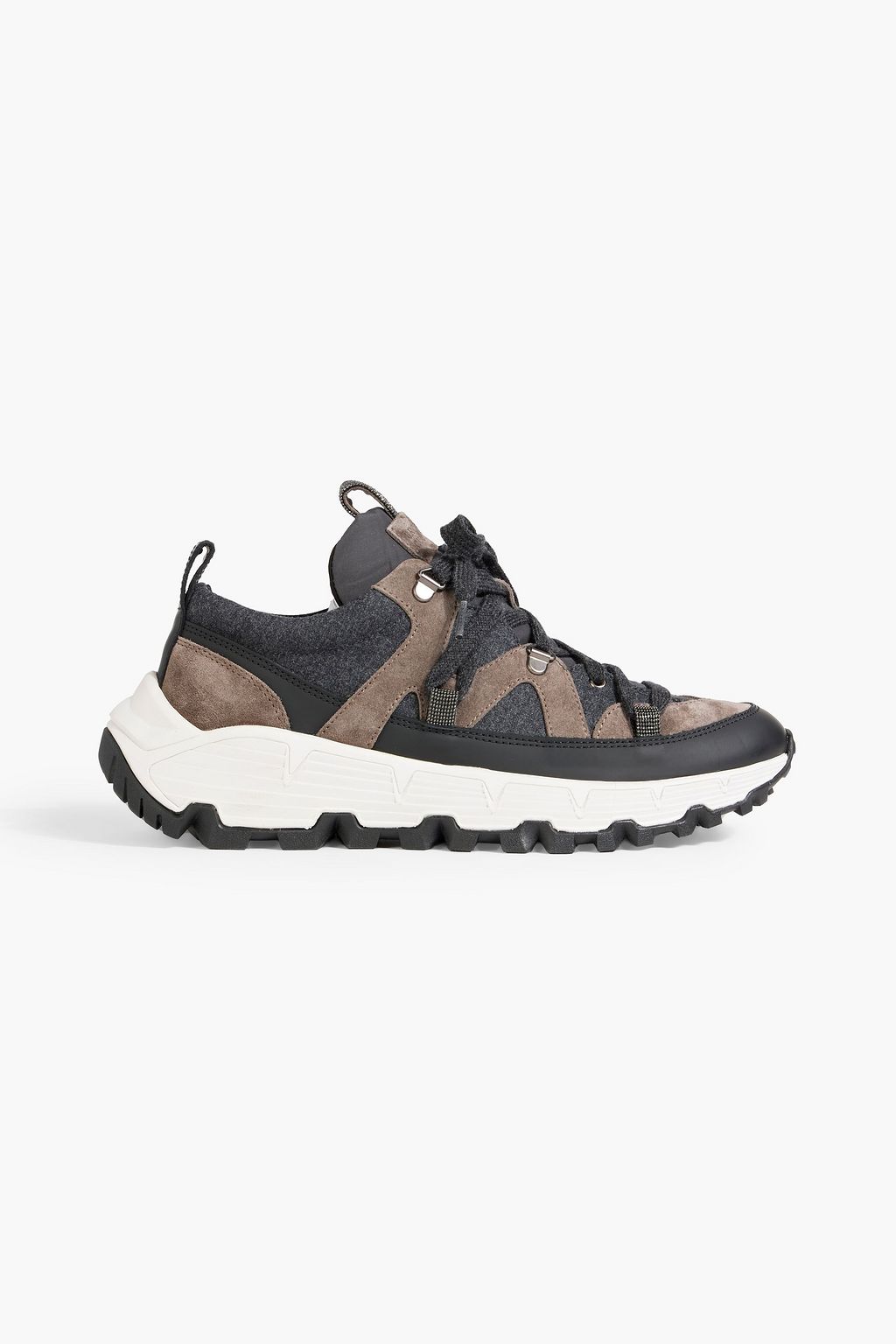 BRUNELLO CUCINELLI Bead-embellished suede and felt sneakers