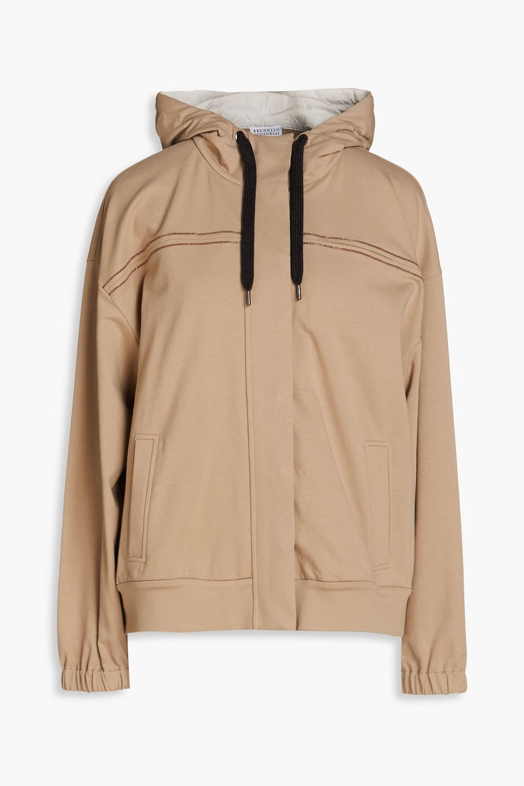 BRUNELLO CUCINELLI Bead-embellished French cotton-terry zip-up hoodie