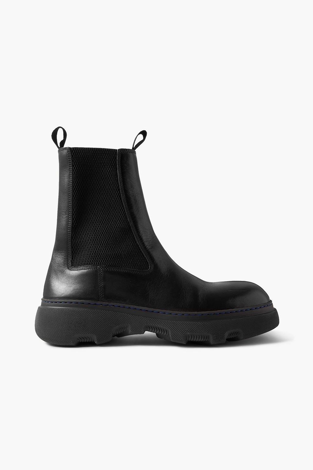 Burberry's Chelsea boots come with a modern feel. They have leather uppers with a rounded toe and chunky creeper soles embossed with wavy blue branding. There's two pull tabs to help you get them on and off easily.