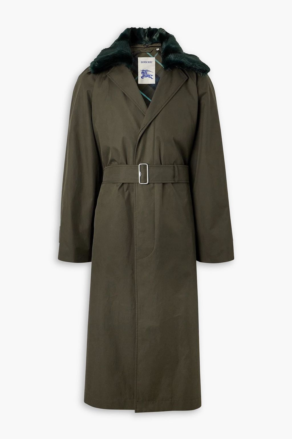BURBERRY Plush-trimmed belted cotton-gabardine car coat