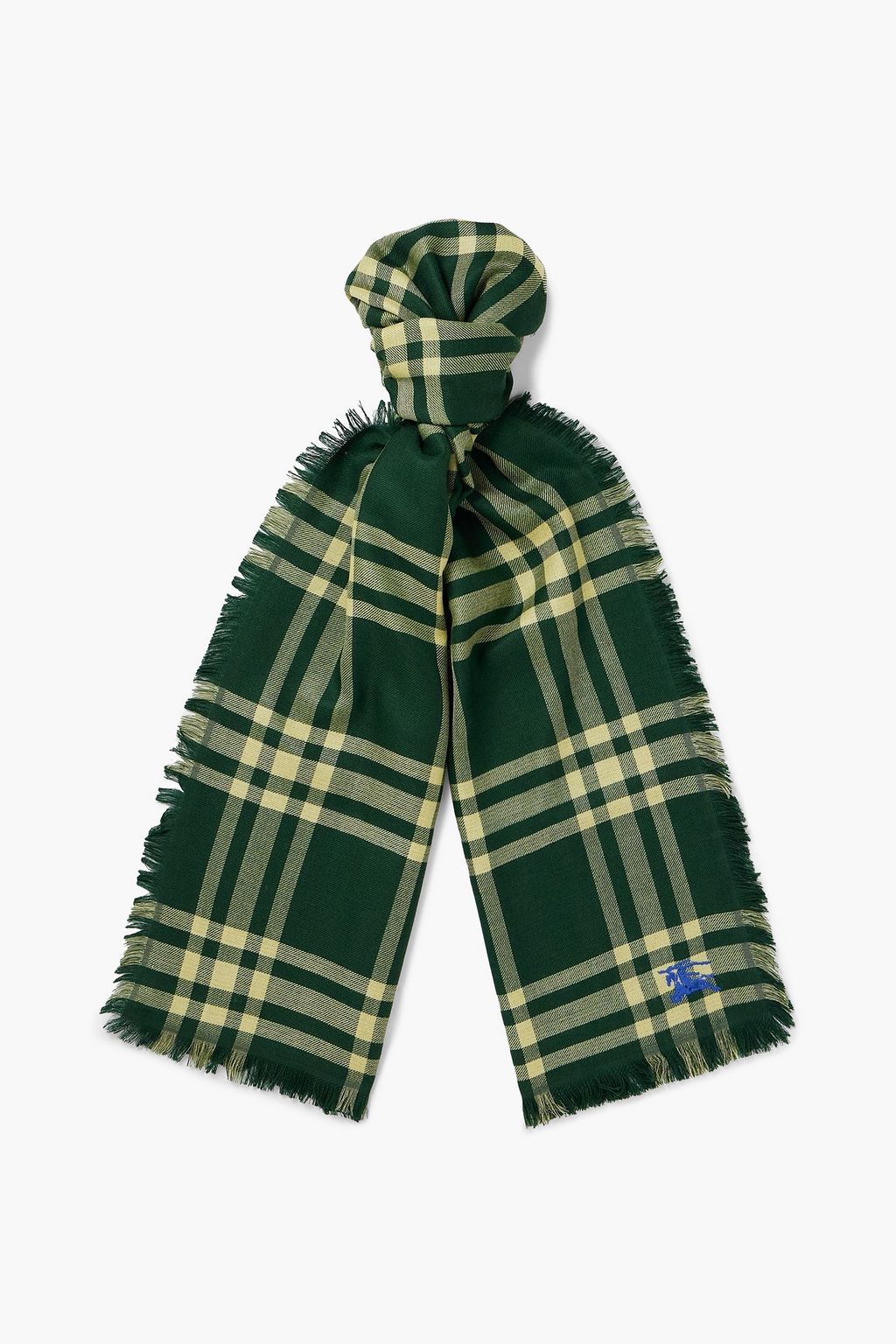 BURBERRY Frayed logo-embroidered checked wool and silk-blend scarf