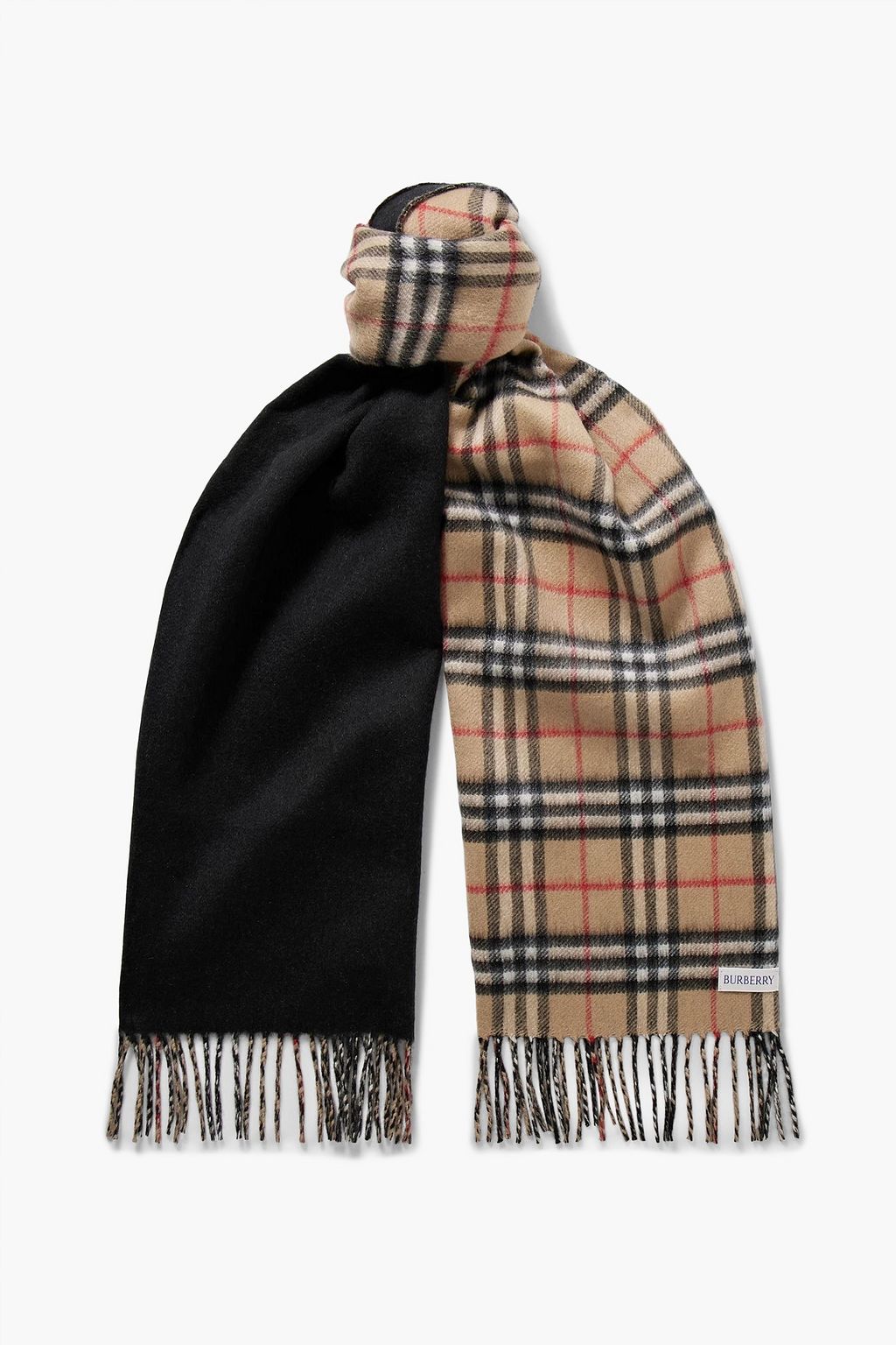 The reversible design of Burberry's scarf creates endless styling possibilities. Patterned with the brand's archival checks on one side and solid black on the other, it's made from warm cashmere and has fringed edges.