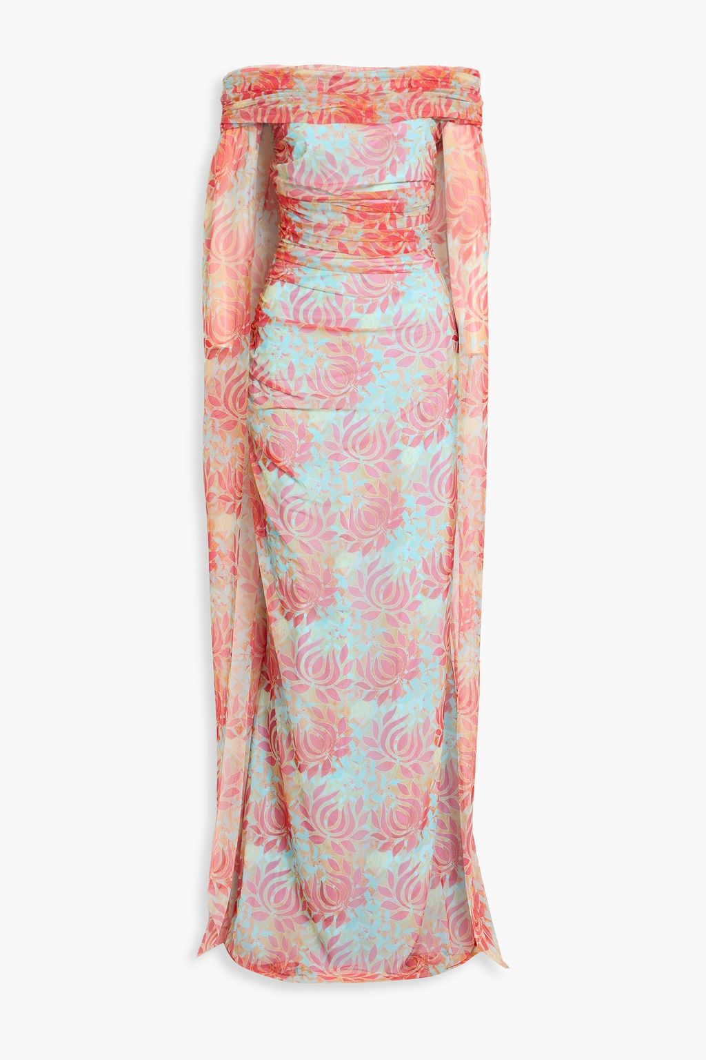 CHIARA BONI LA PETITE ROBE Rikyu off-the-shoulder cape-effect floral-print stretch-mesh gown