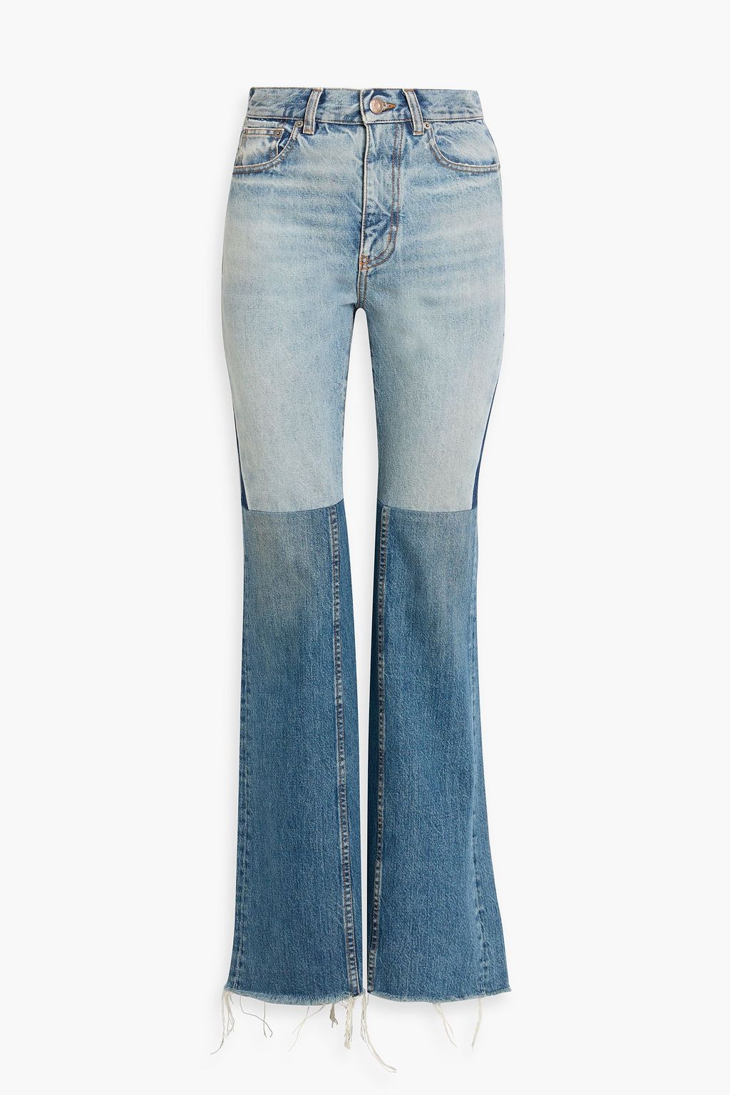 Chloé's mid-rise jeans are made from patchwork denim that really accentuates the vintage, flared silhouette. Take inspo from the runway styling and wear yours with a tucked-in blouse.