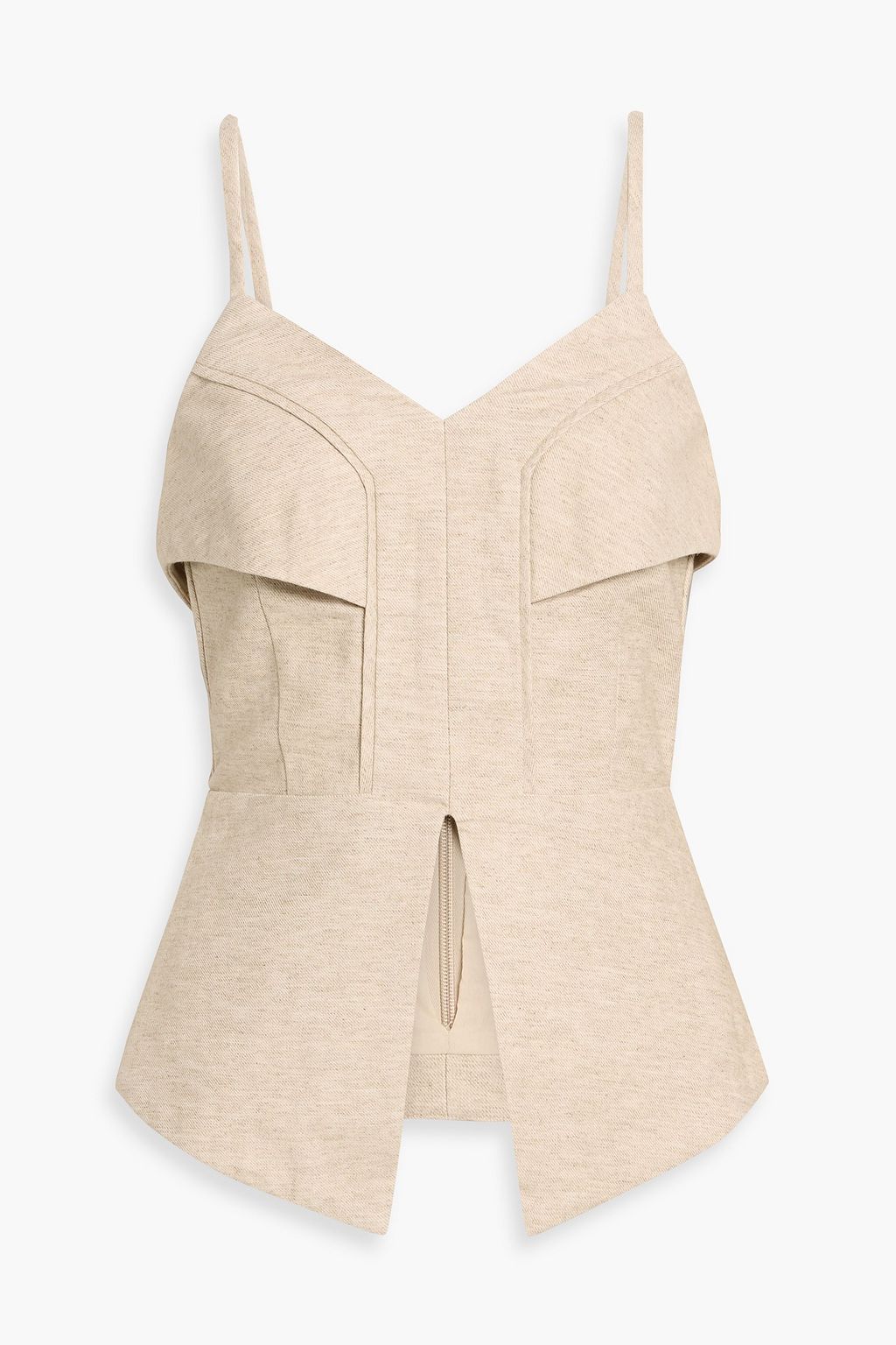 Concealed hook and zip fastening at back