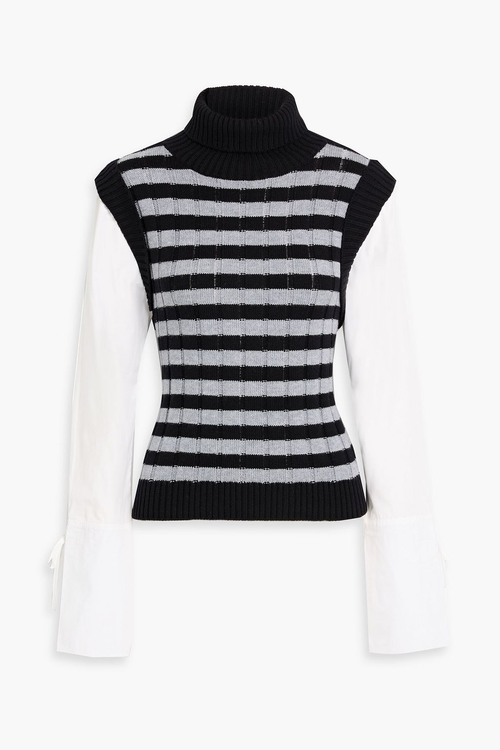 DEREK LAM 10 CROSBY Paola poplin-paneled striped cotton and wool-blend turtleneck sweater