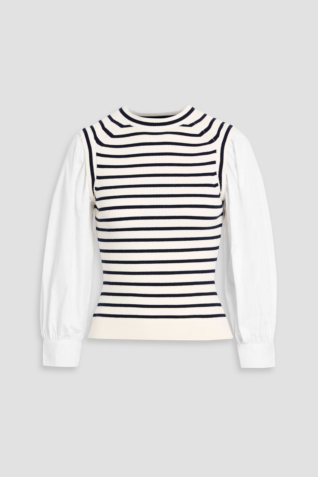 DEREK LAM 10 CROSBY Tirza poplin-paneled striped ribbed wool-blend top