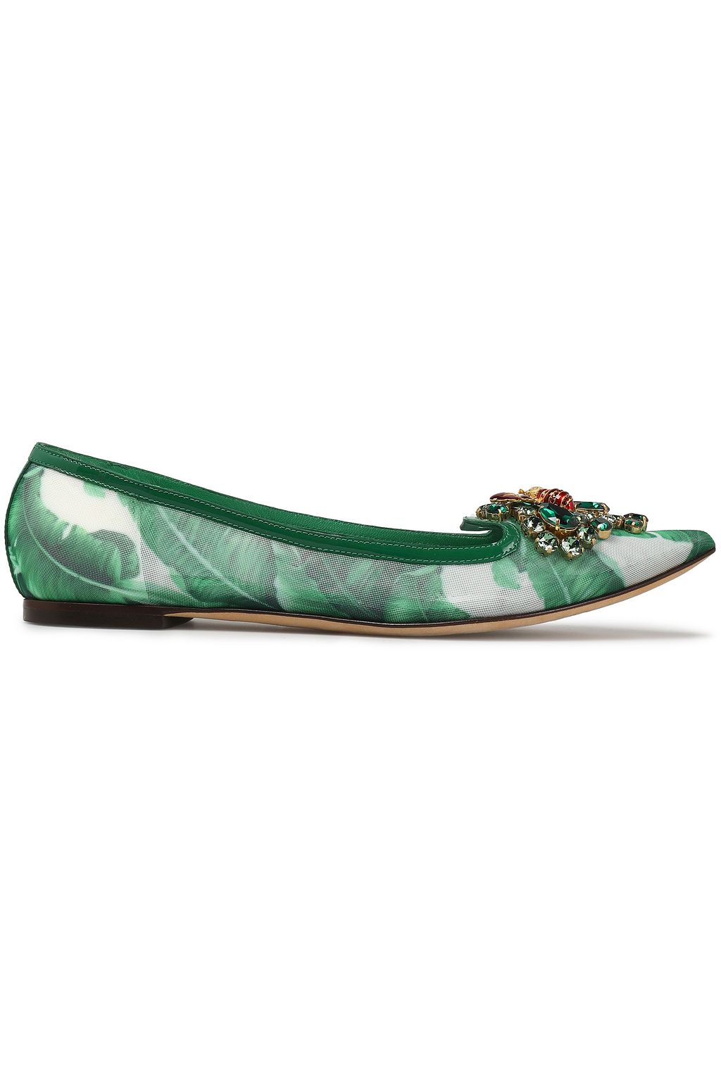 DOLCE&GABBANA Crystal-embellished printed mesh point-toe flats