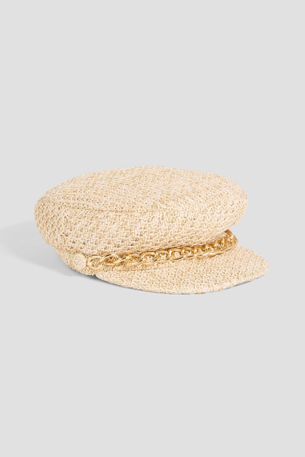 EUGENIA KIM Marina chain-embellished metallic faux straw cap