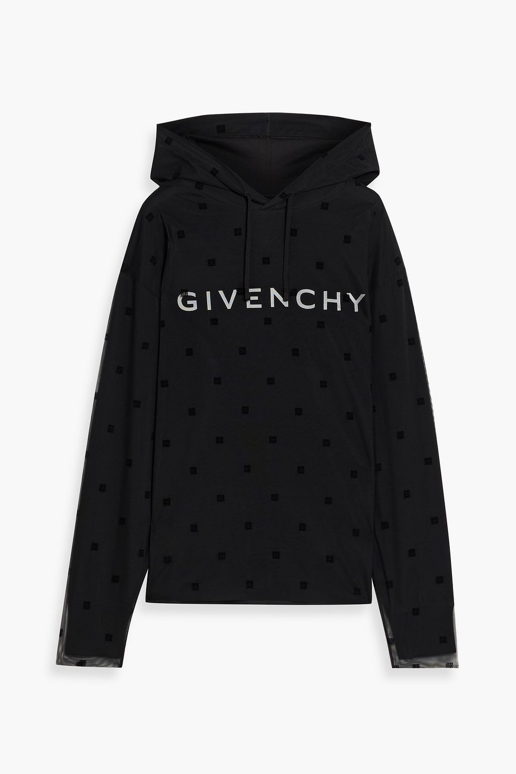 GIVENCHY Layered printed cotton-jersey and flocked mesh hoodie