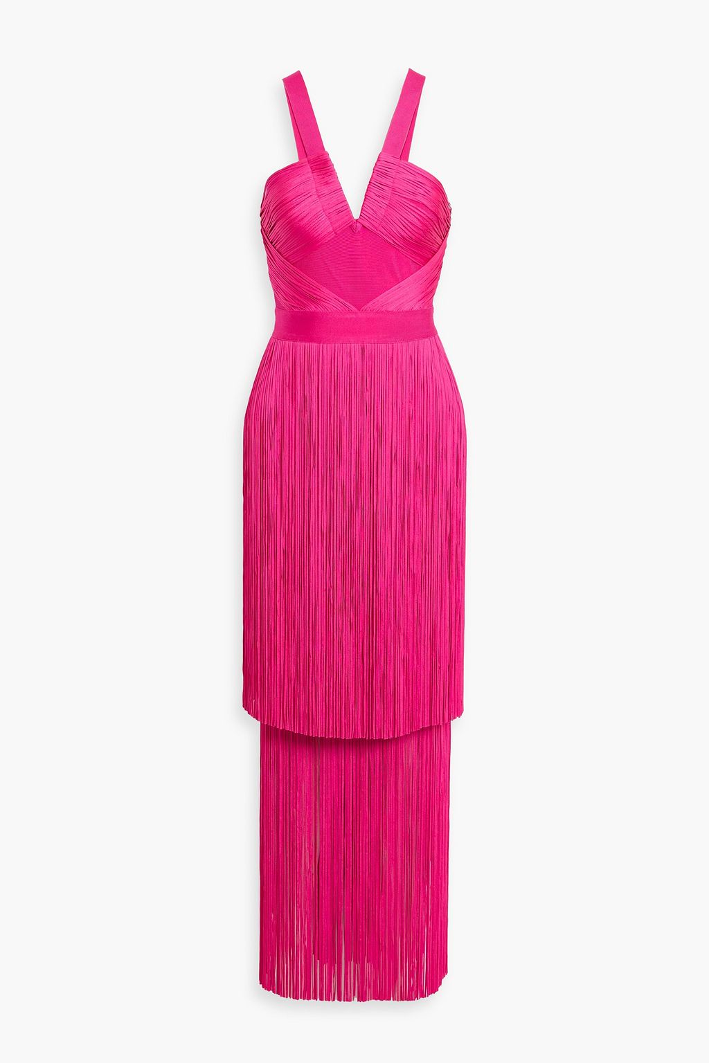 Herve Leger's 'Margaret' dress was made to move. With a sculpted bodice made from their signature bandage that hugs in all the right places and a cascade of fringe that sways with every step, it's pure glamour. Plus, that gorgeous shade of pink had us at hello...