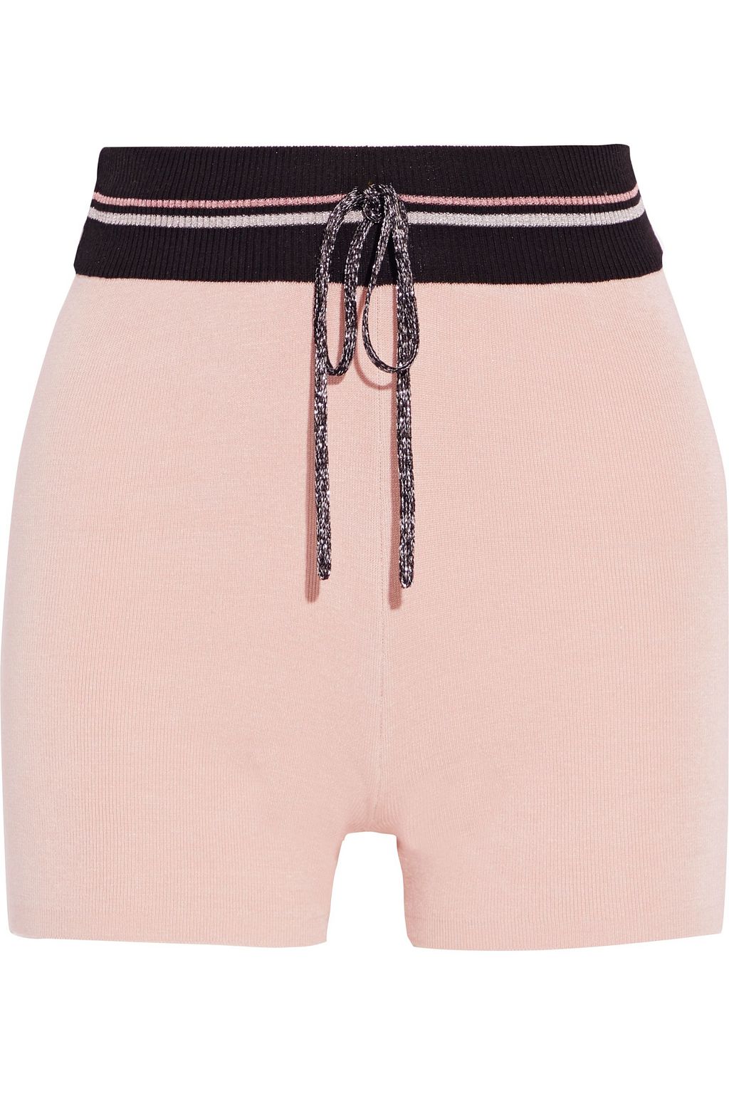 LA PERLA Metallic-trimmed ribbed silk-blend pajama shorts