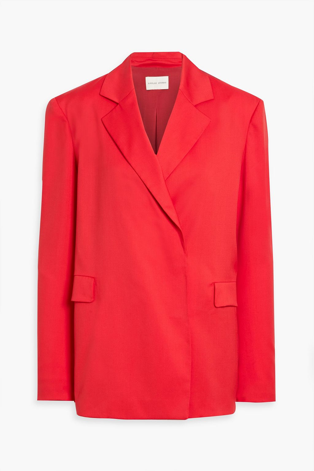 Concealed button fastenings through double-breasted front