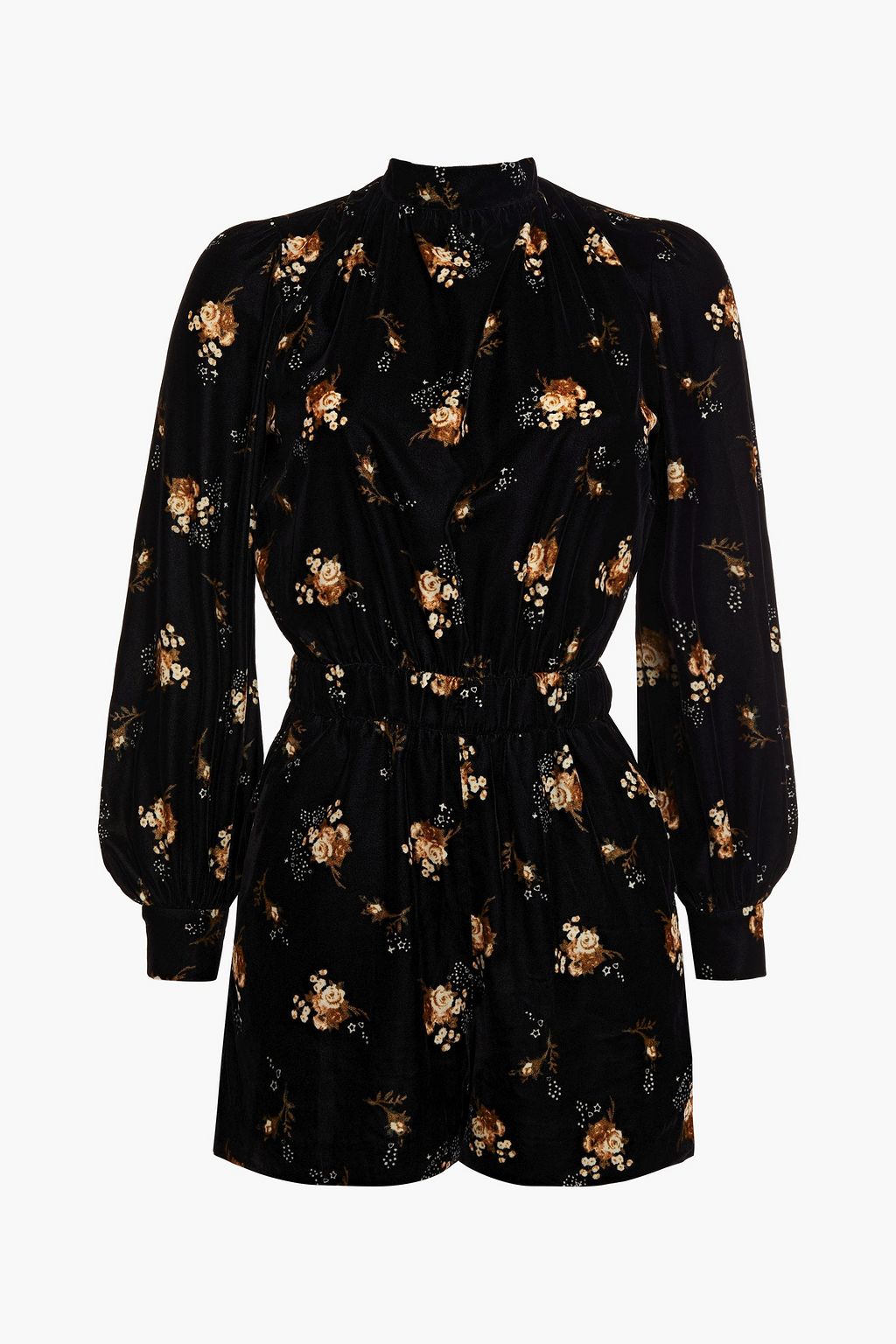 MAJE Floral-print velvet playsuit