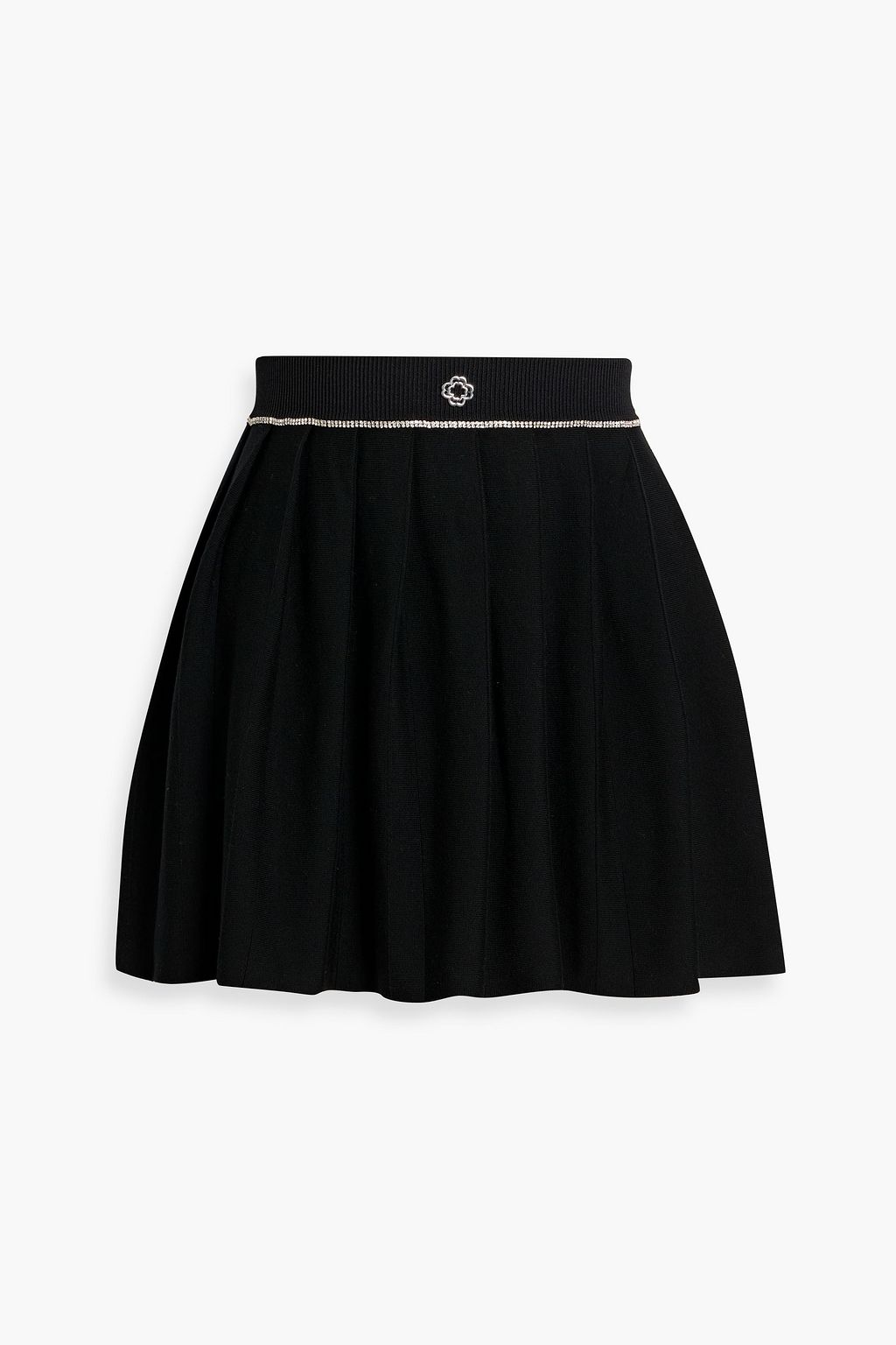 MAJE Crystal-embellished pleated wool-blend mini skirt