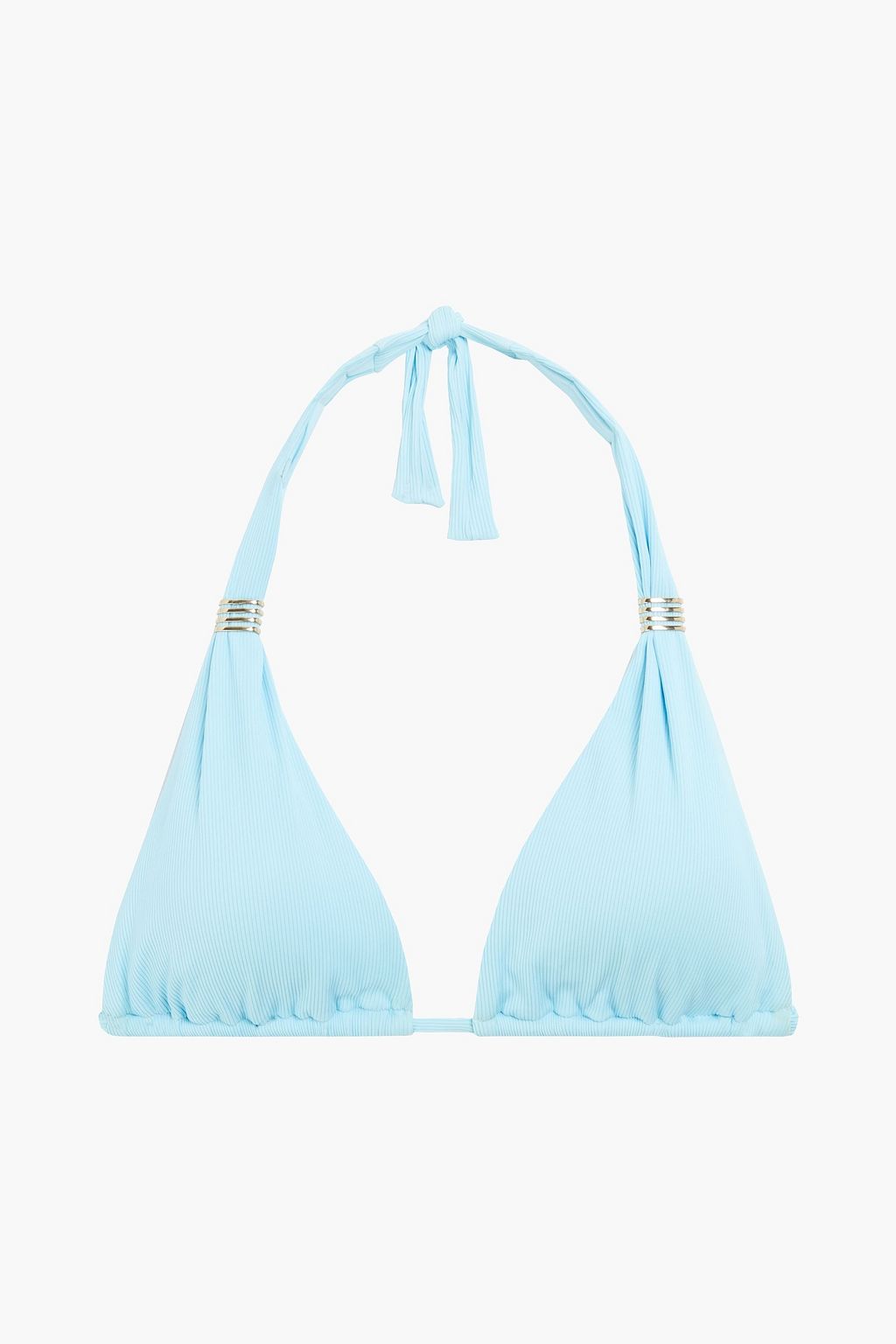 Ribbed appliquéd stretch-polyamide triangle bikini top